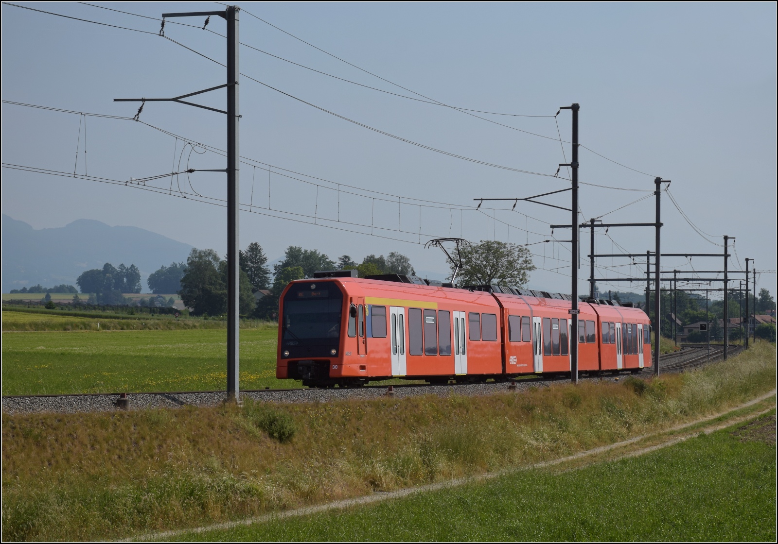 RBS/BSU: Der neue BSU MERCEDES CITARO 94 wartet am 13. Dezember 2014 auf dem RBS Bahnhof Lohn Lüterkofen die Ankunft der S 8 mit dem RABe 4/12 25 NEXT ab.