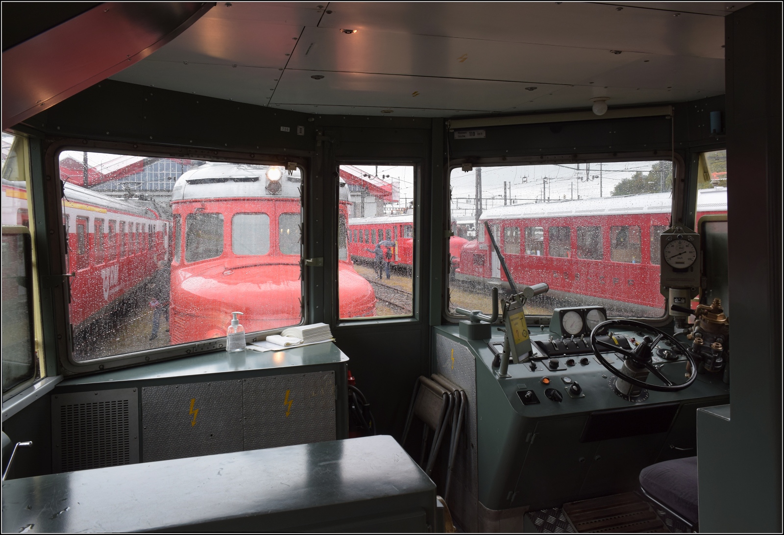 Heizungsregeltechnik im BCFZe 4/6 der BLS. Man beachte die raffniert angebrachte Dreisprachigkeit. August 2023.