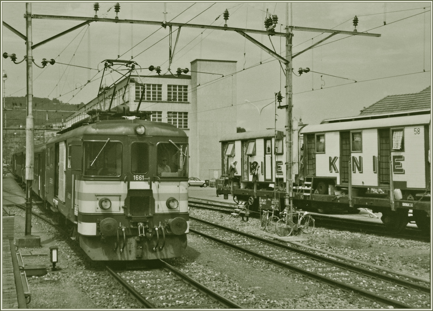 Der Gepäcktriebwagen De 4/4 wurde im Jahr 1928 für die SBB gebaut, der mechanische Teil von SWS und SIG, der elektrische Teil durch die SAAS ausgerüstet. Ein Gepäckabteil und ein separates Postabteil standen im Inneren zur Verfügung. August 2023.