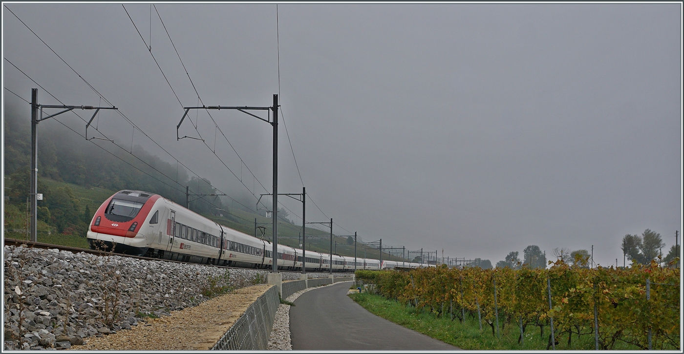 ICN Einsätze auf der Simplon Linie sind sehr selten, am 10. Mai 2023 war es wieder einemal soweit, ein ICN war in einem IR 90 Umlauf auf der Fahrt nach Birg und konnte beim Verlassen von Vevey fotografiert werden.