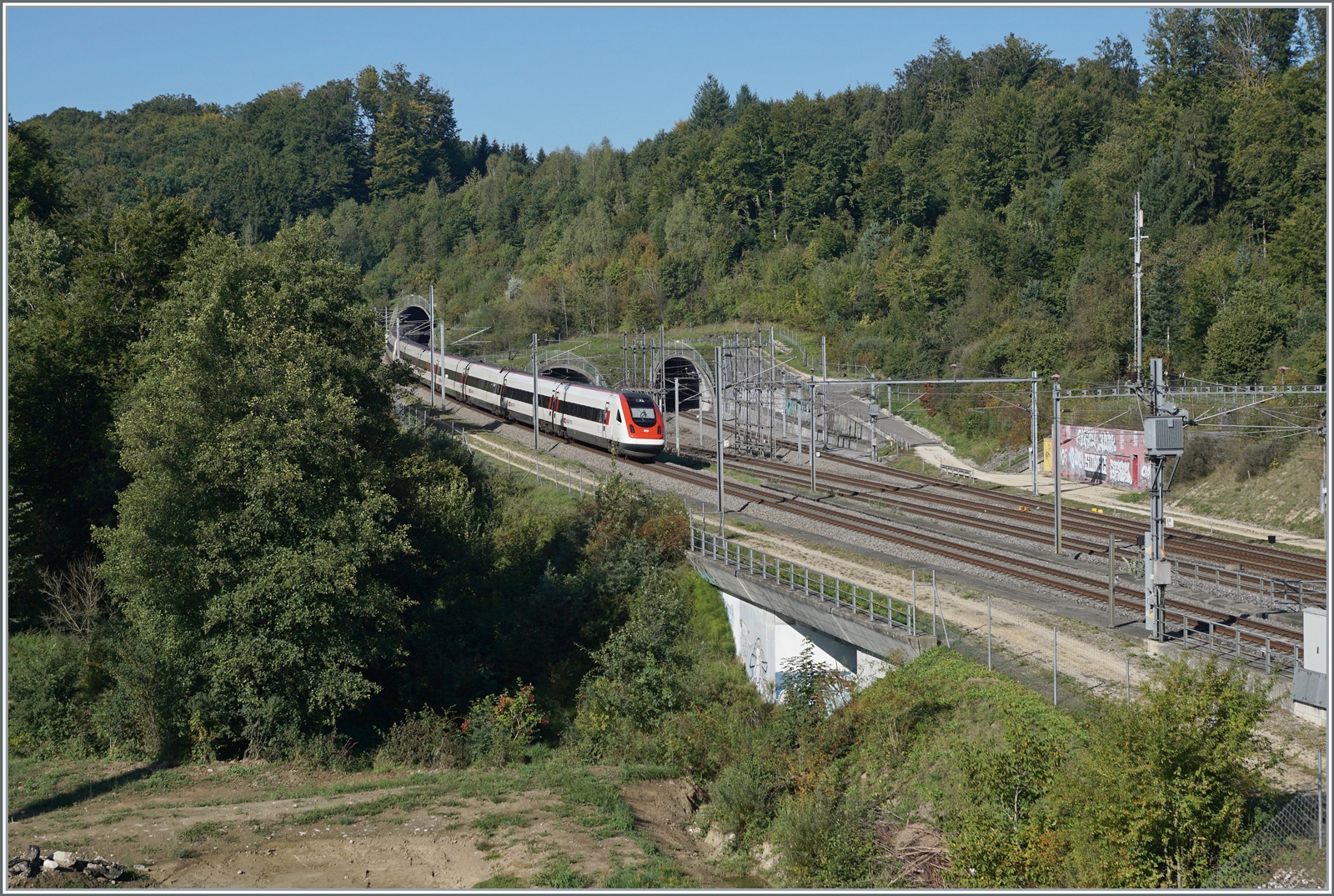 Ein SBB RABe 502 in voller (Druch) Fahrt in Wanzwil (Dienst- und Abzweigstation).