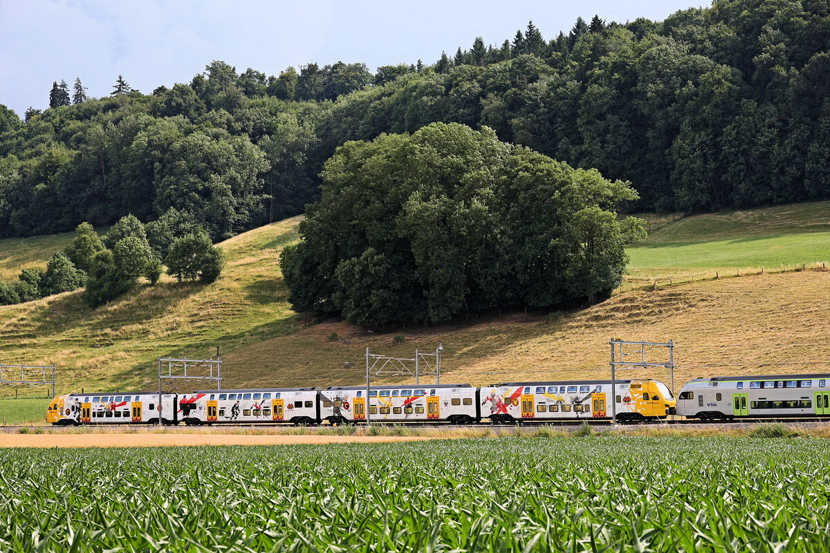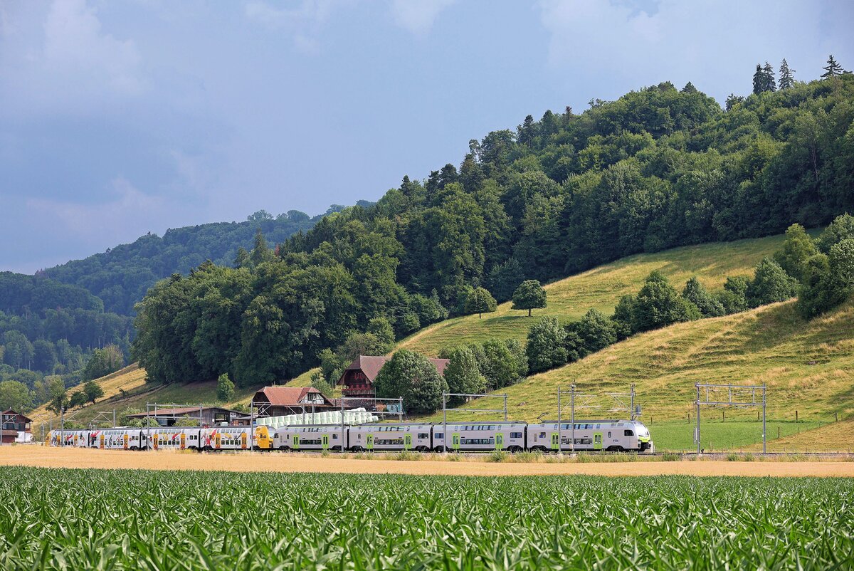 Mutz RABe 515 039 an gleicher Stelle bei Langenthal auf der unteren Strecke. Oktober 2023.