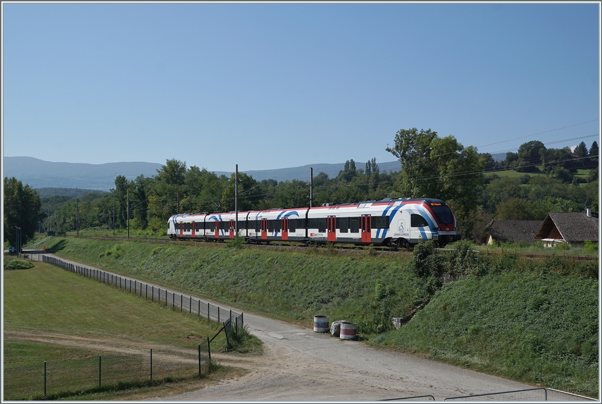 Der SBB LEX RABe 522 224 auf dem Weg als SL6 nach Bellegarde (Aine) erreicht den 5,2 km von La Plaine entfernten SNCF Bahnhof Pougny-Chancy. Wie der Bahnhofsnahme schon sagt, "teilen" sich die beiden Orte Pougny und Chancy die Haltestelle, wobei Chancy als westlichster Ort in der Schweiz nur etwa 500 Meter von hier entfernt ist.