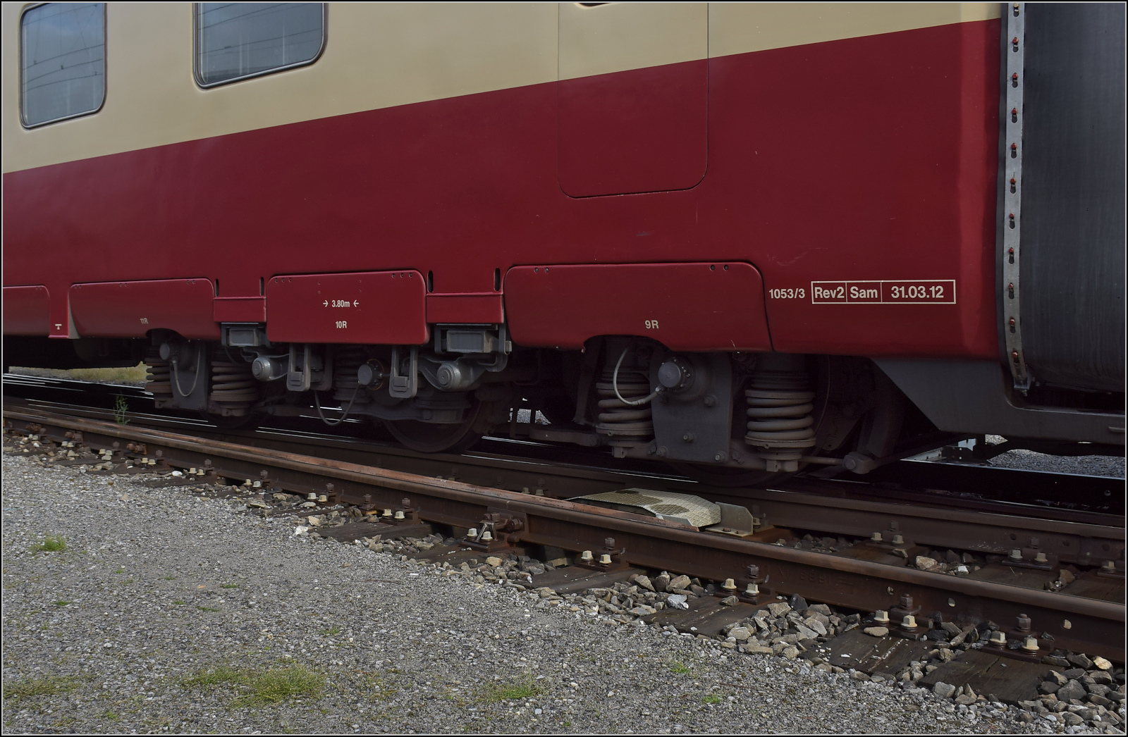 Dreiachsiges Antriebsdrehgestell des Viersystemzuges RAe TEE II 1053. August 2023.