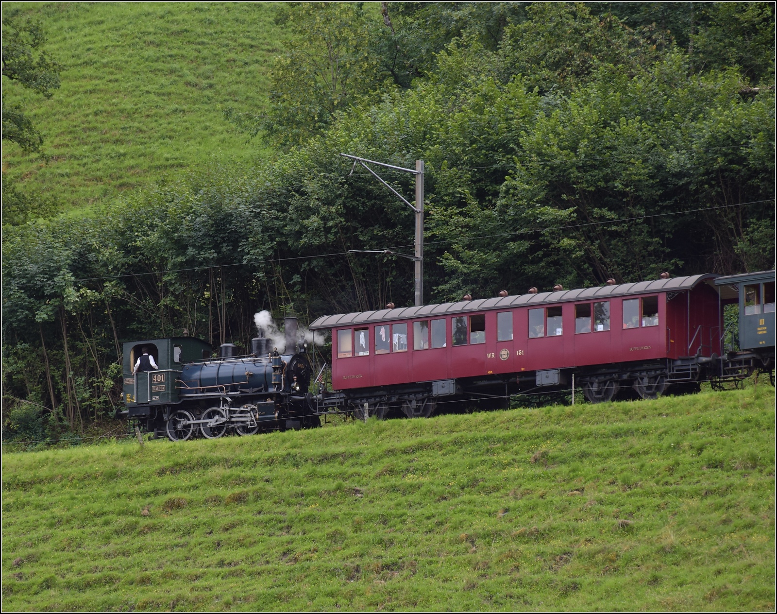 Ed 3/3 401 der UeBB in Bäretswil. Juli 2023.